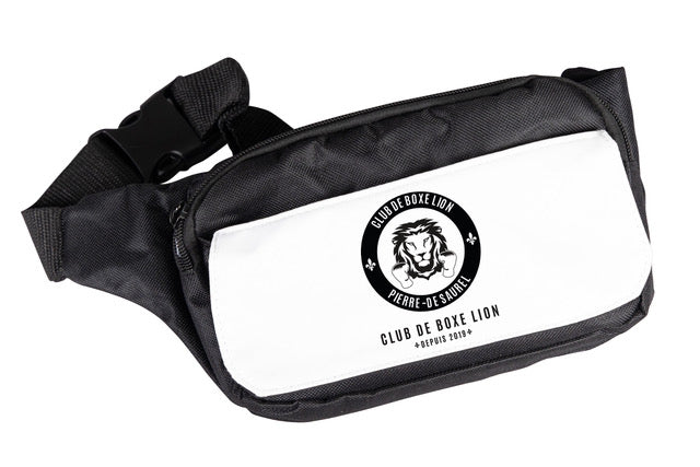 Sac « banane » ajustable à la taille et bandoulière. Noir et blanc.